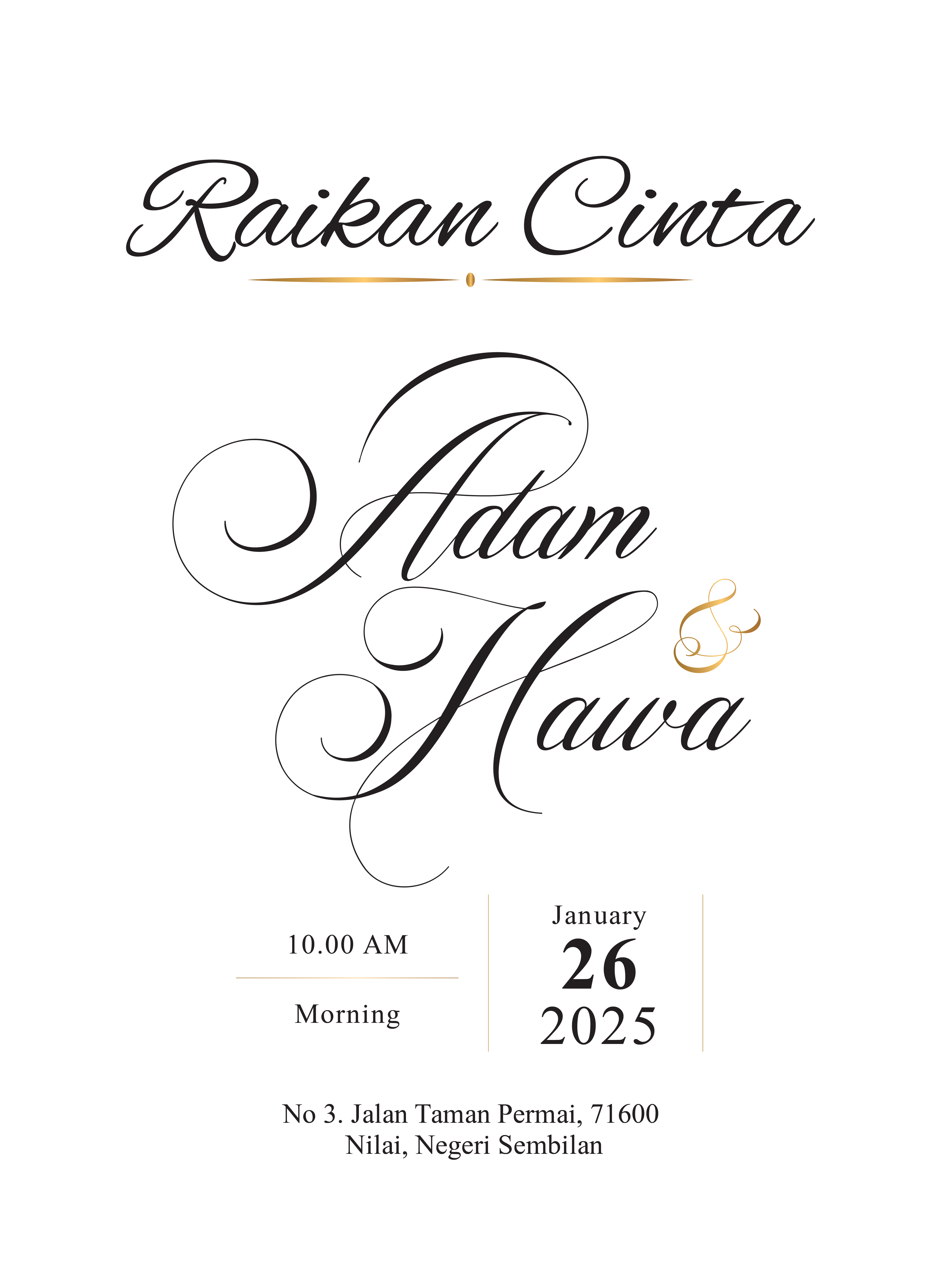DENGAN SEGALA HORMATNYA MENJEMPUT DATO'/ DATIN/ TUAN/ PUAN/ ENCIK/ CIK DAN SEISI KELUARGA KE MAJLIS PERKAHWINAN PUTERA KAMI BERSAMA PASANGANNYA